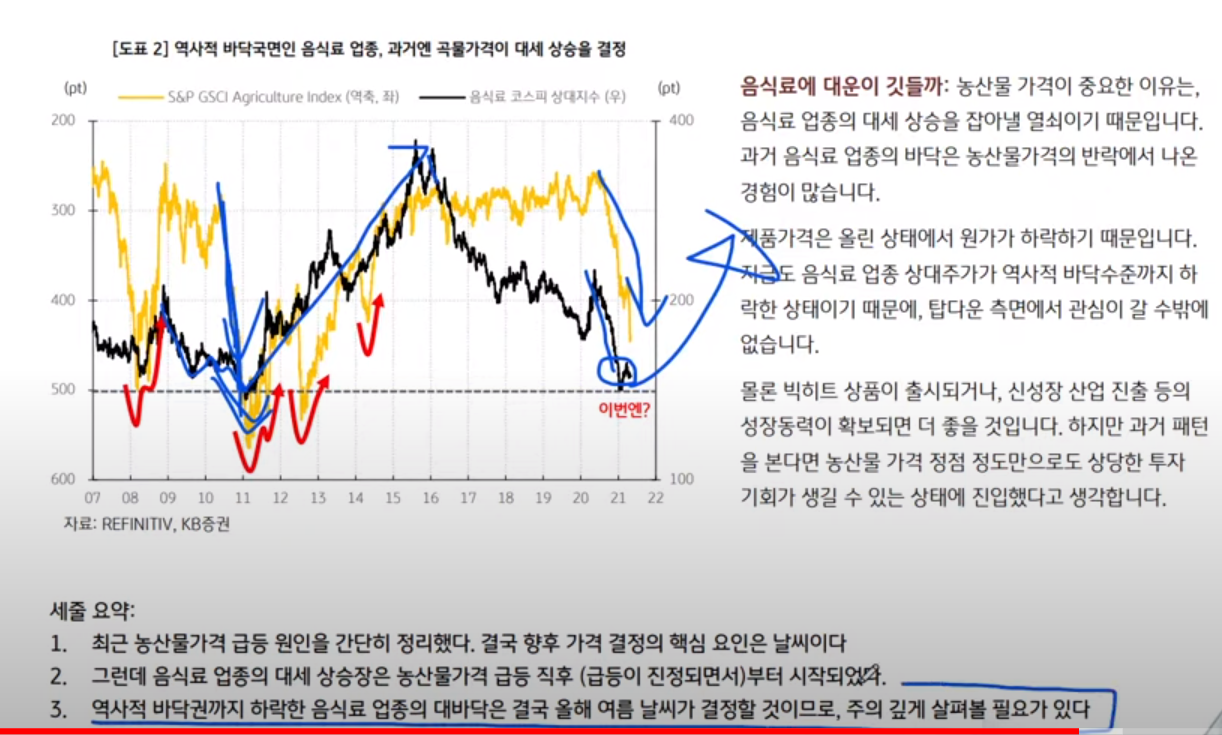 음식료 : 바닥, 곡물가격 오르면 같이 오름