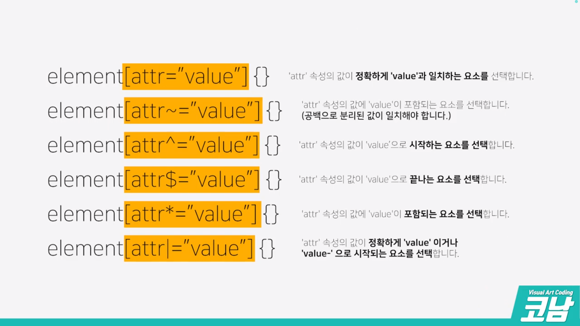 a[href$=".pdf"] { ... }".pdf"로 끝나는 값을 속성으로 가지는 요소에만 적용