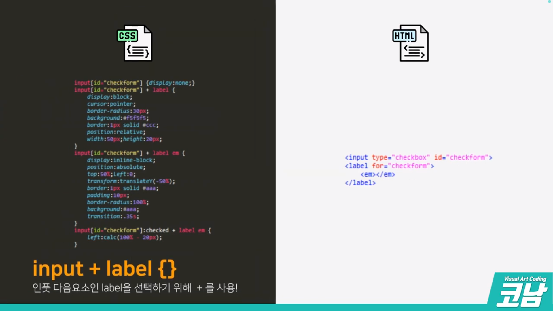 인풋 다음요소인 label을 선택하기 위해 많이 사용