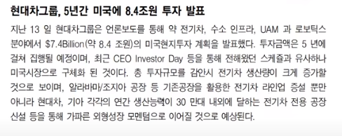 - 내연 기관차에서 끝날 게 아니라 전기차, 자율주행, UAM(Urban Air Mobility)까지 모빌리티로 인정받아야 주가 레벨업