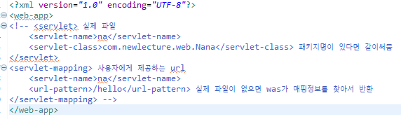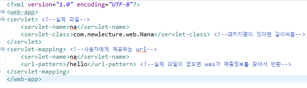 <servlet-class>com.newlecture/Nana</servlet-class> <!--패키지명이 있다면 같이써줌-->