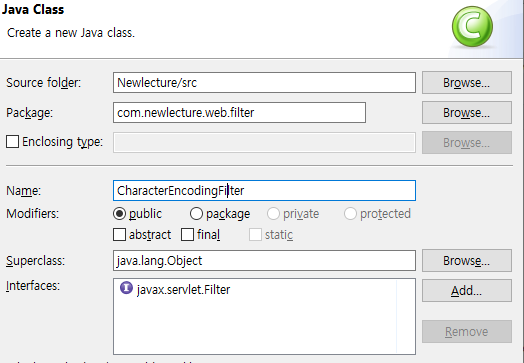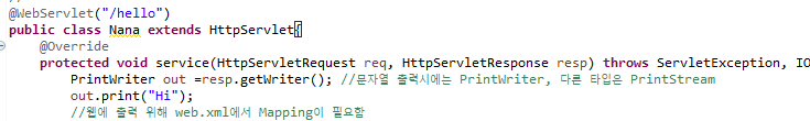 서블릿 클래스를 만들 때 new - servlet - 매핑이름 바꾸기 - service만 체크