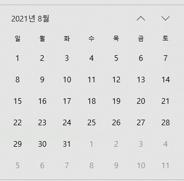- 달력은 전월과 익월의 날짜를 포함해 6주 (42일)로 이루어져있음