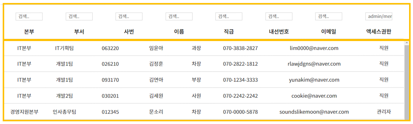 thead(컬럼)는 고정한 채로 tbody(데이터) 내부에 스크롤이 생기도록 할 필요가 있다.