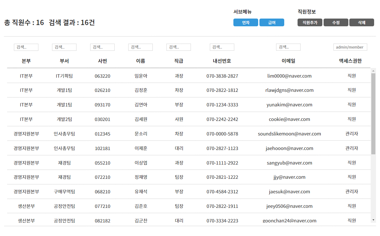 tbody 내부 html 코드는 ajax를 통해 데이터를 가져온 후에 제이쿼리를 이용해 작성할 예정이다.