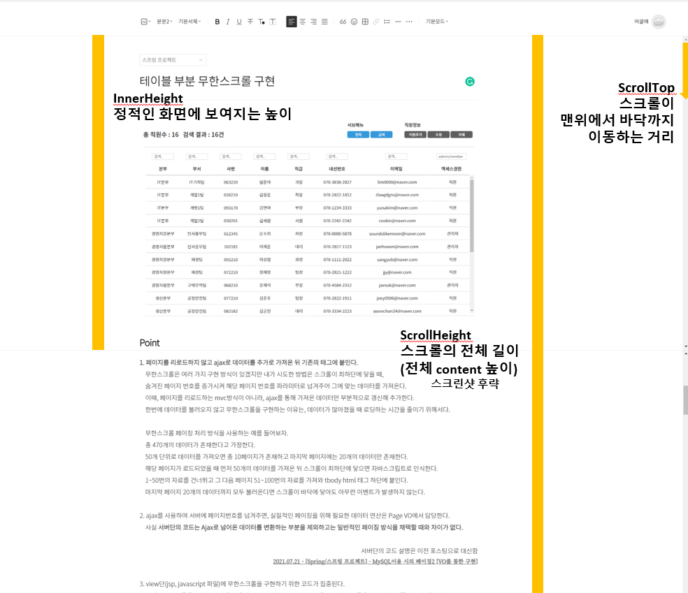 사실 서버(controller, service, dao, mapper)의 코드까지 완성되어야 스크롤이 제대로 생기고 있는지,