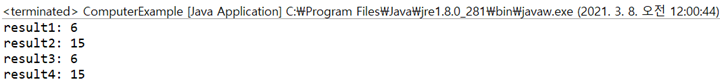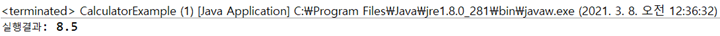 println("실행결과: " + result); //6. result = 8.5을 가지고 돌아옴. 괄호 안은 문자열 연산이 됨(문자열 + 8.5 = String) > println메소드를 호출한다.