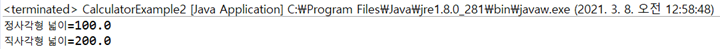 //자동형변환으로 areRectangle(double width)를 알아서 찾는다. 이때 warning혹은 error가 뜨지만 정상적으로 실행된다.