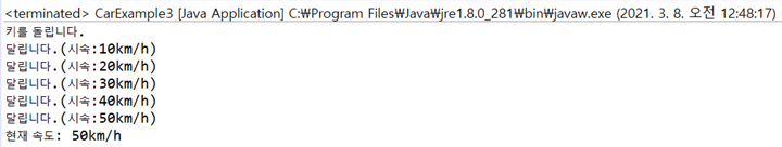 //getSpeed 메소드를 통해 Car3의 필드 speed값을 받아와 실행 클래스에서도 저장한다.