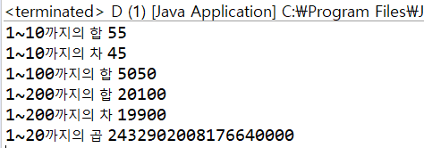 System.out.println("1~20까지의 곱 " + c.multi(200));