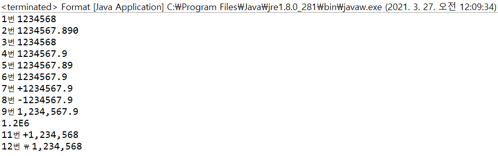 ③ String 변수명 = 참조객체명.format(숫자);String result = df.format(1234567.89);