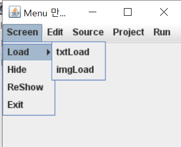 loadMenuItem.add(txtloadMenuItem); //메뉴의 서브메뉴에 달기 위해 똑같이 add()
