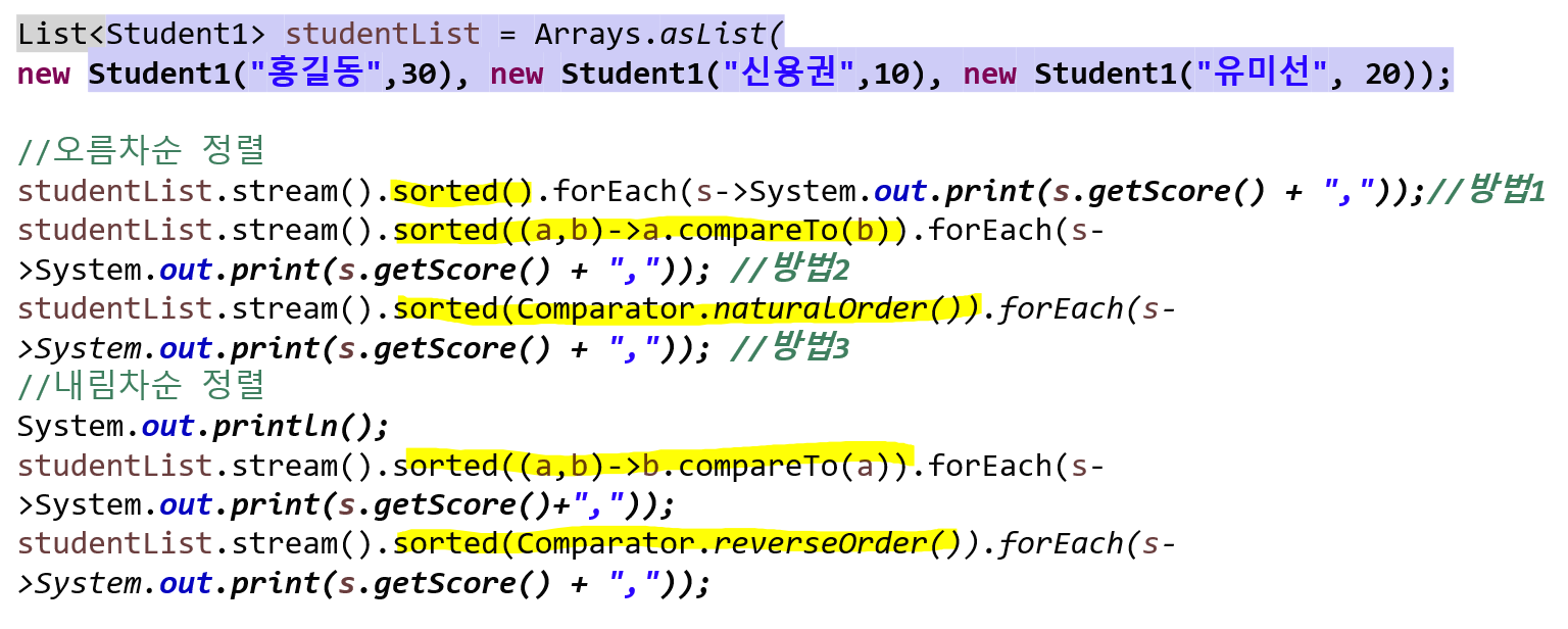List<Student> list = Arrays.asList(new Student("홍길동", 10), new Student("신용권",20), new Student("유미선", 30));