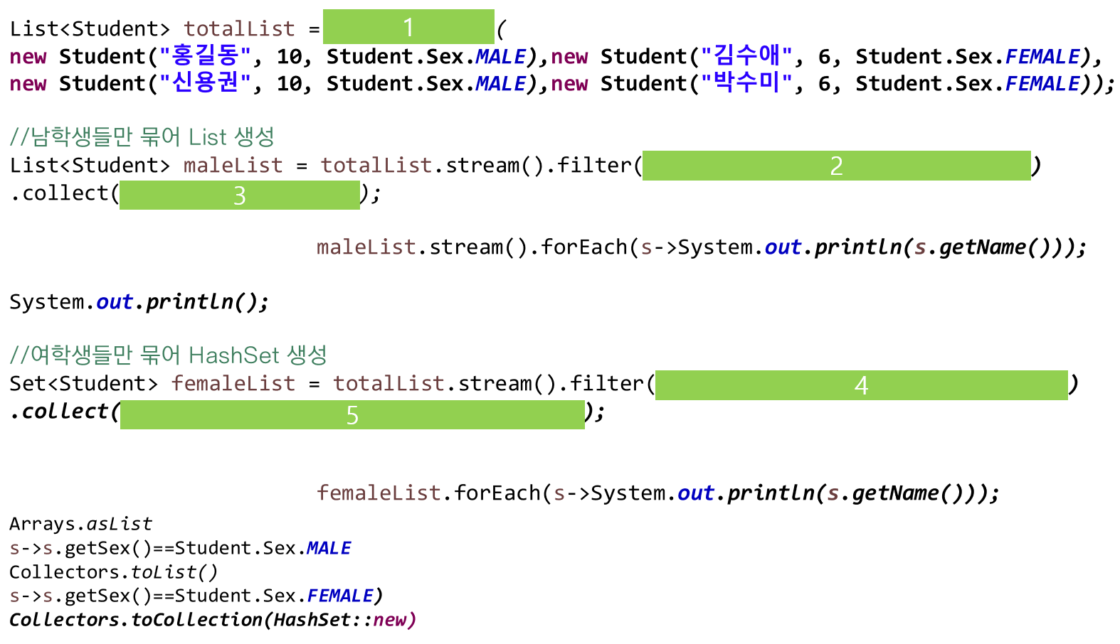 System.out.println("남학생 전체 이름 : " + mapByName.get(Student.Sex.MALE));
