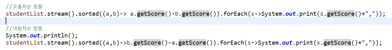 stream.forEach(s->{ //메소드 호출 따로 하지 않고 forEach에서 알아서 소비