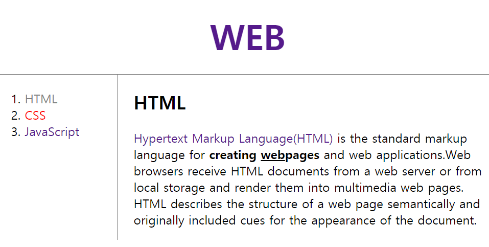 a - Selector(선택자) | color:red; - Declaration(선언, 효과)