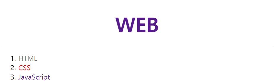<li> <a href="2.html" style ="color:red; text-decoration: underline"> CSS </a> </li>