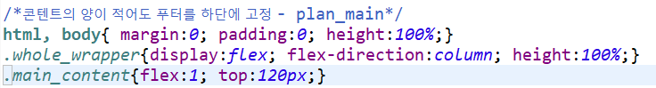position만으로 푸터를 고정하기엔 여러가지 한계가 존재했다. 특히, 화면에 비해 컨텐트 양이 작아 body끝에 푸터가 오다보니 중간쯤에서 끝나버릴 때